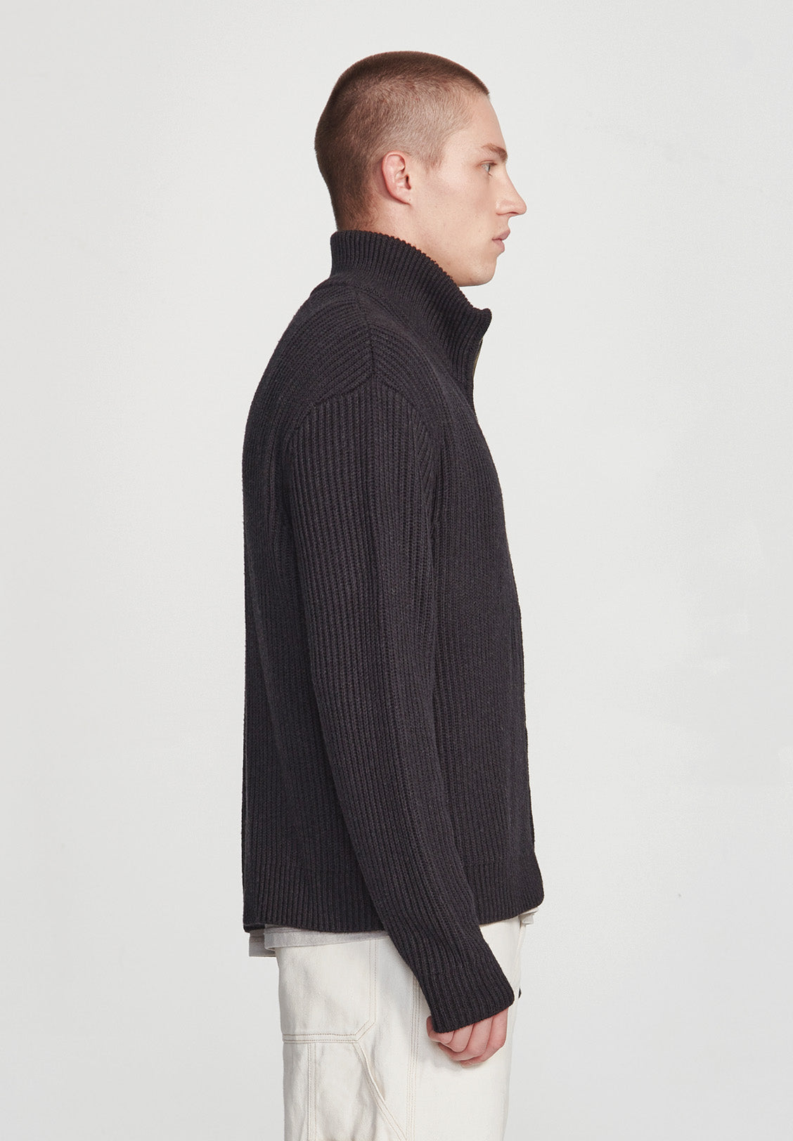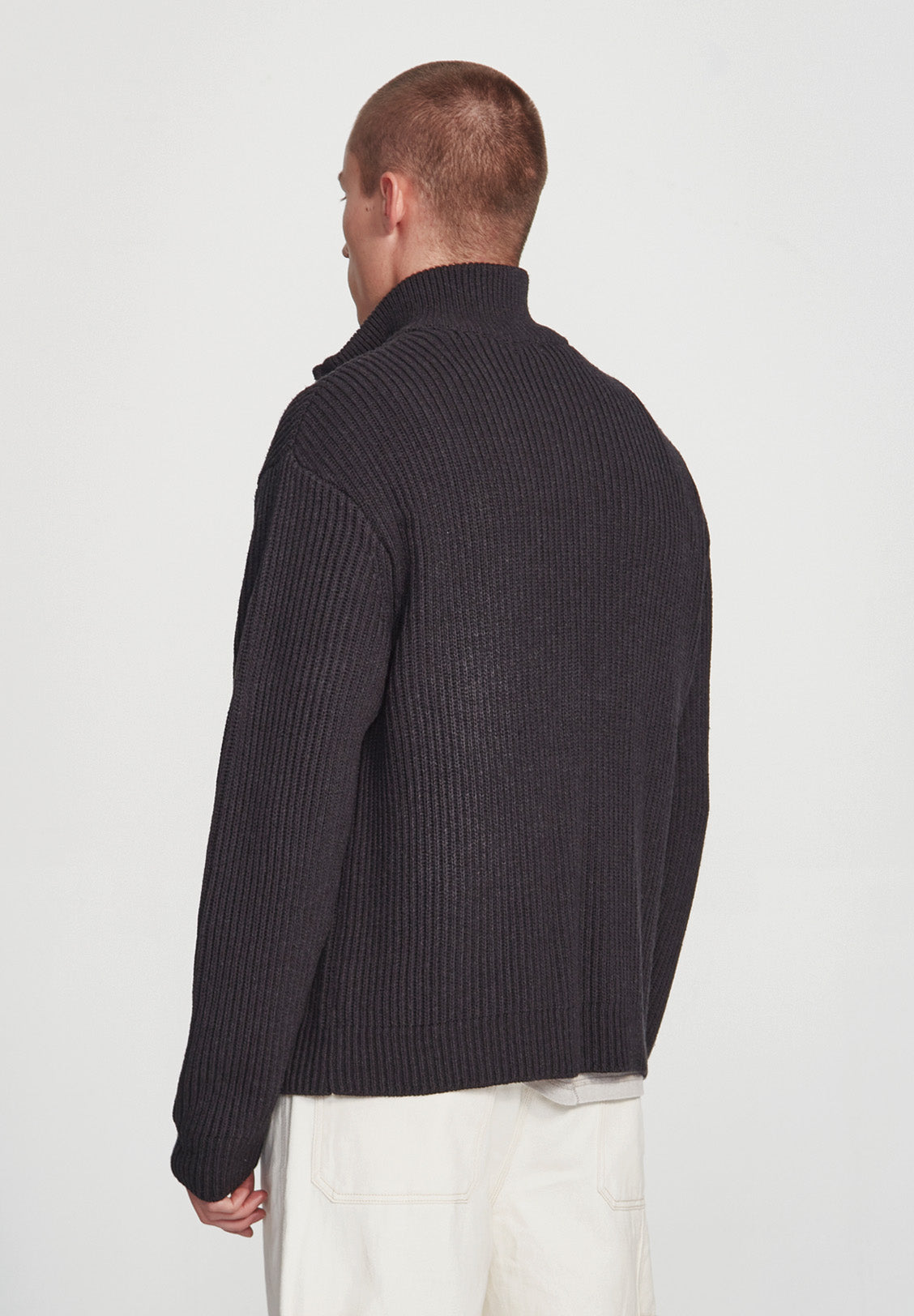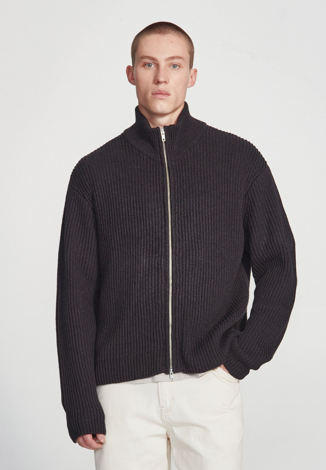 CHUNKY KNIT ZIP THROUGH, CHARCOAL