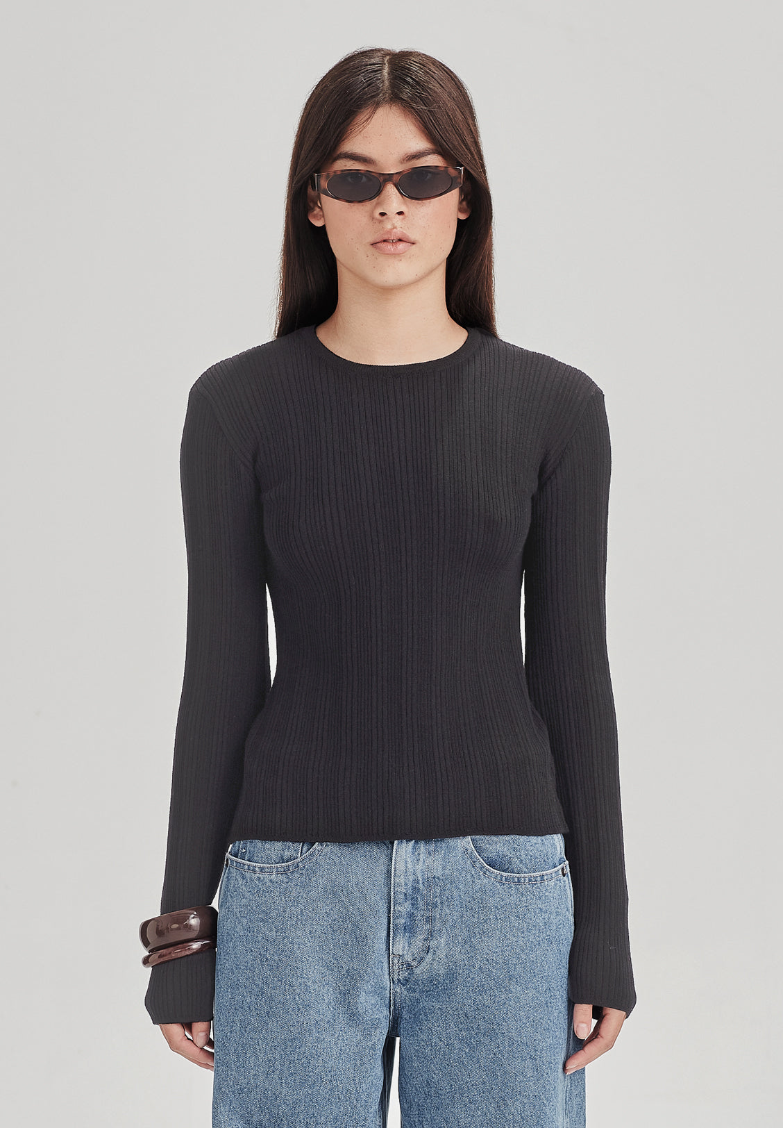 SUPERFINE MERINO BASE KNIT LS, CHARCOAL