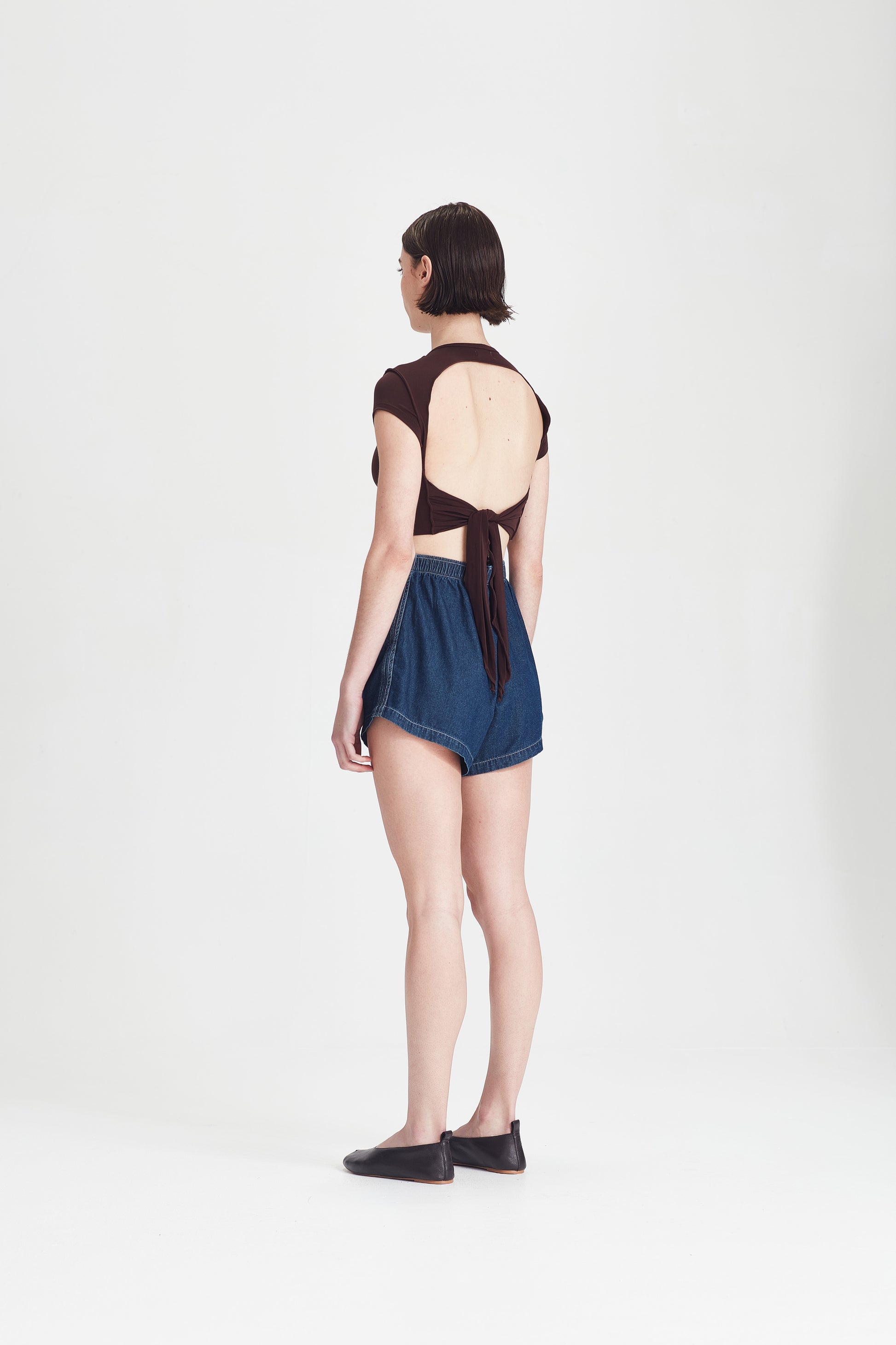 BOYFRIEND SHORT, DARK CHAMBRAY