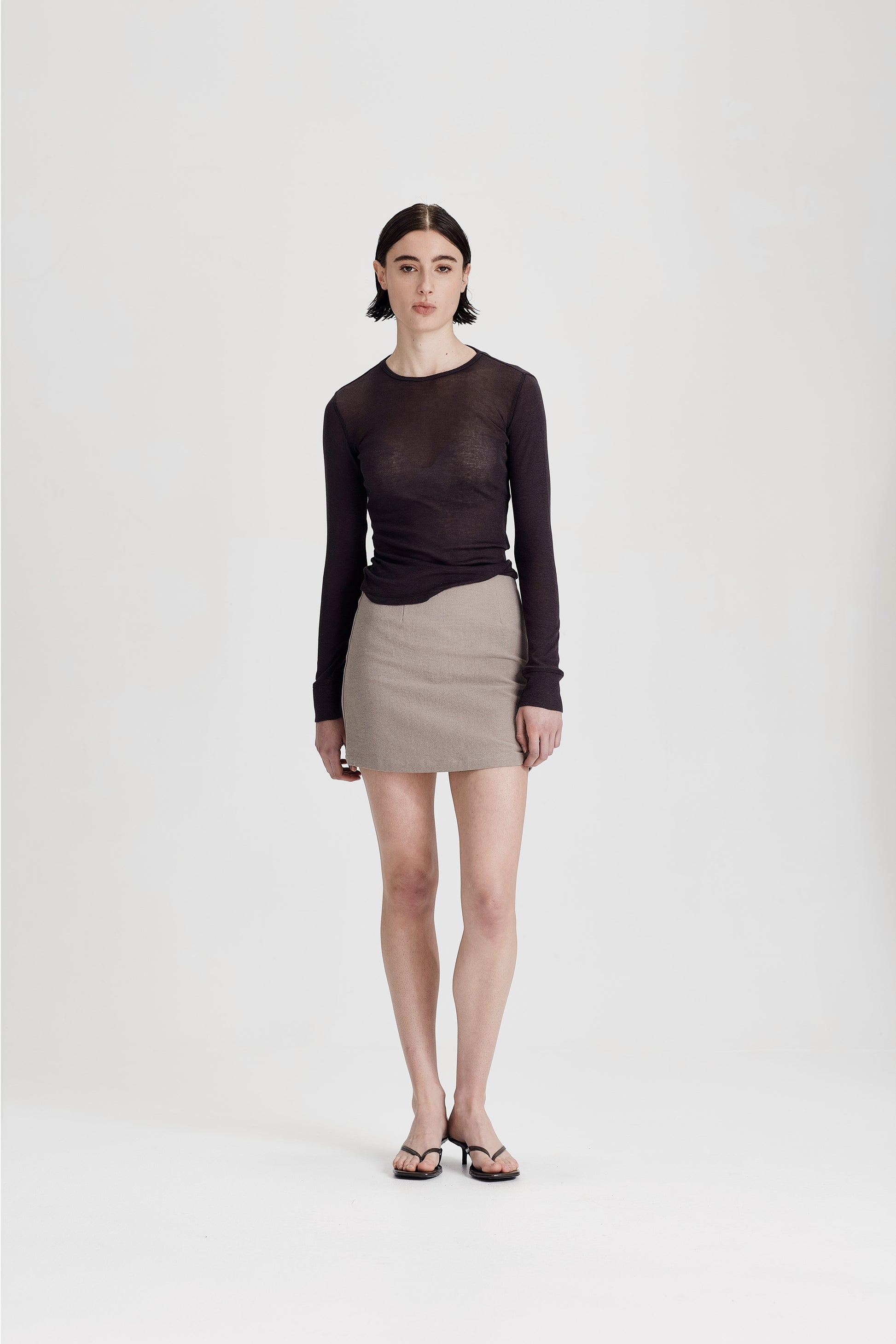 Effortless and essential, this long sleeve top is a true everyday staple. Made from a soft 50% cotton, 50% Tencel blend, it has a breathable, lightweight feel against the skin. The fabric is very light and slightly sheer, designed in a close-fitting silhouette that works perfectly for layering or wearing on its own.