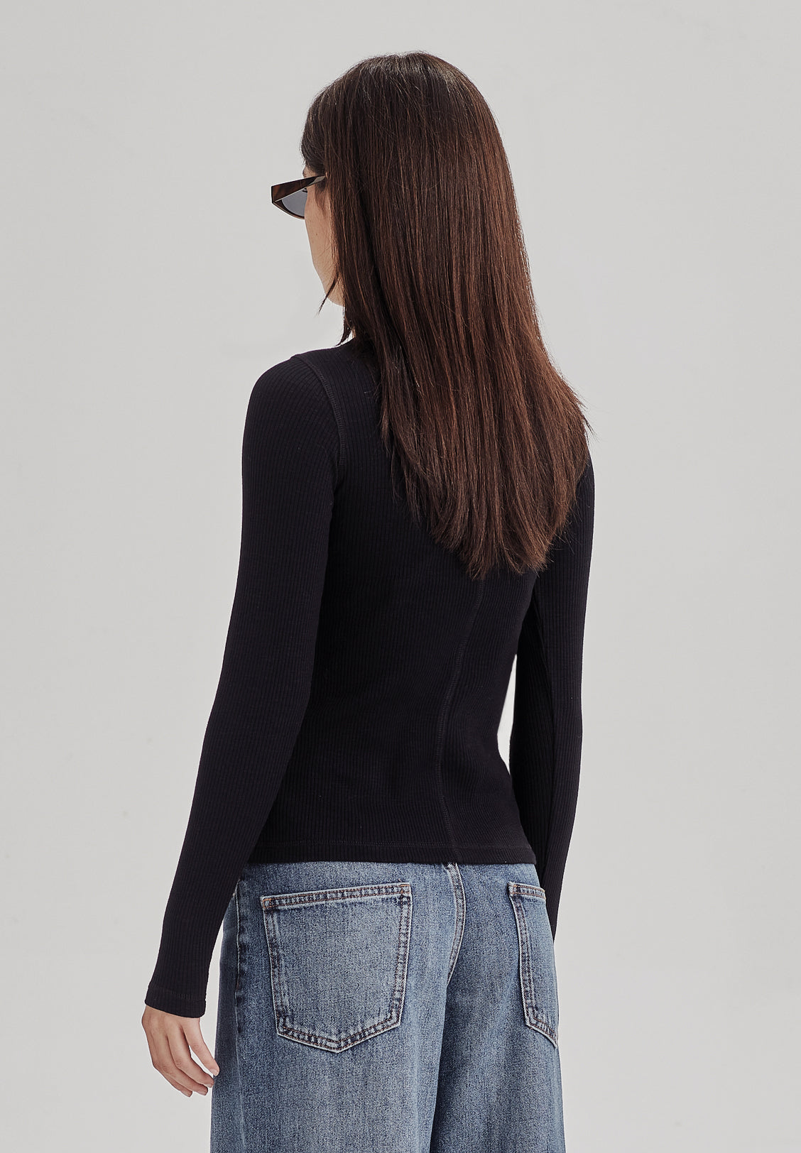 Your everyday go-to. This ribbed long sleeve is crafted from a soft cotton-spandex blend that offers a close, comfortable fit. Finished with a classic crew neckline and centre back seam, it’s designed to flatter and move with you. Size up for a more relaxed look.